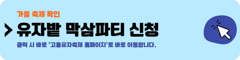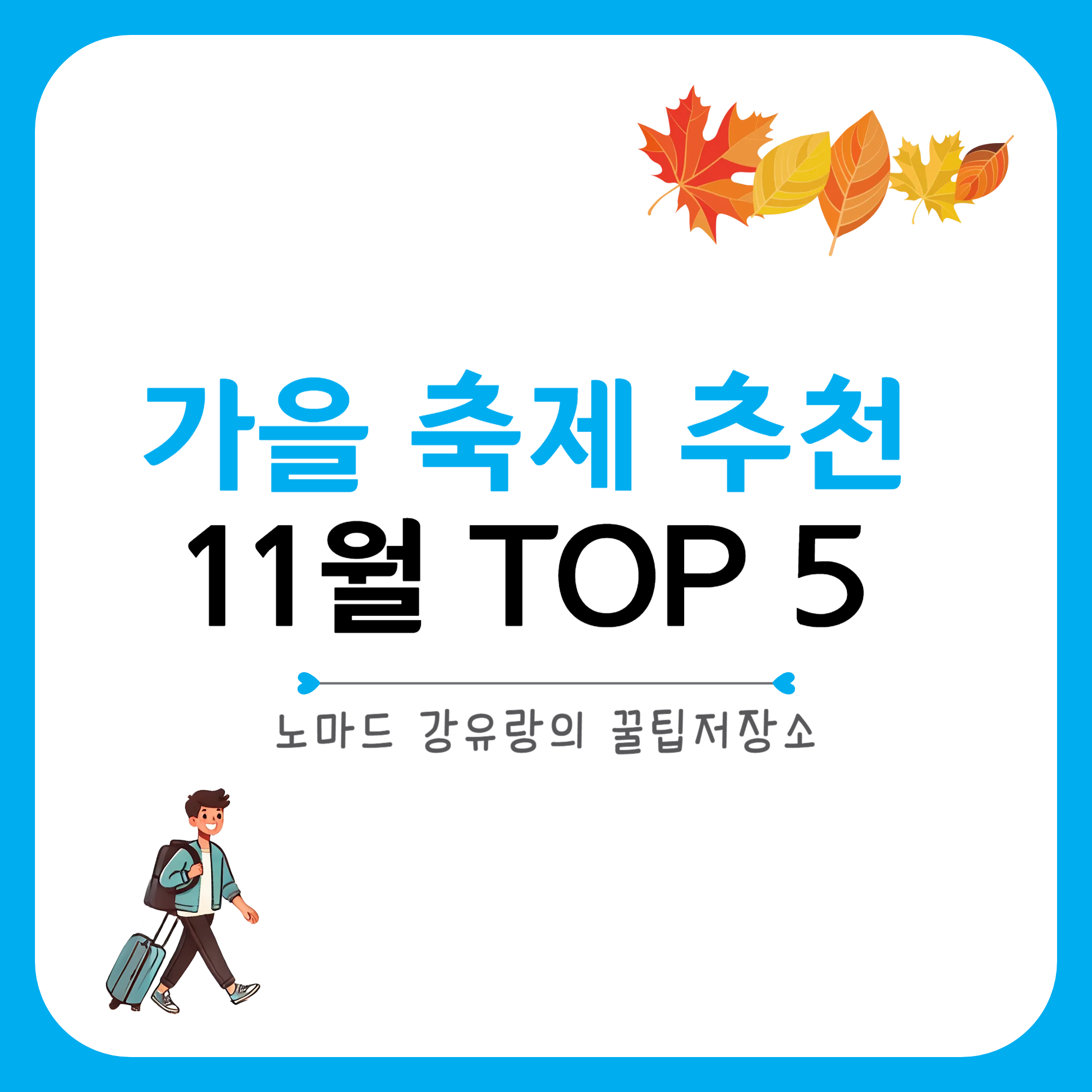 11월 외출하기에 더 없이 좋은 날씨입니다. 11월 축제 정보 TOP 5를 요약했습니다. 가족 연인들과 즐거운 추억 만드시길 바랍니다 :) |