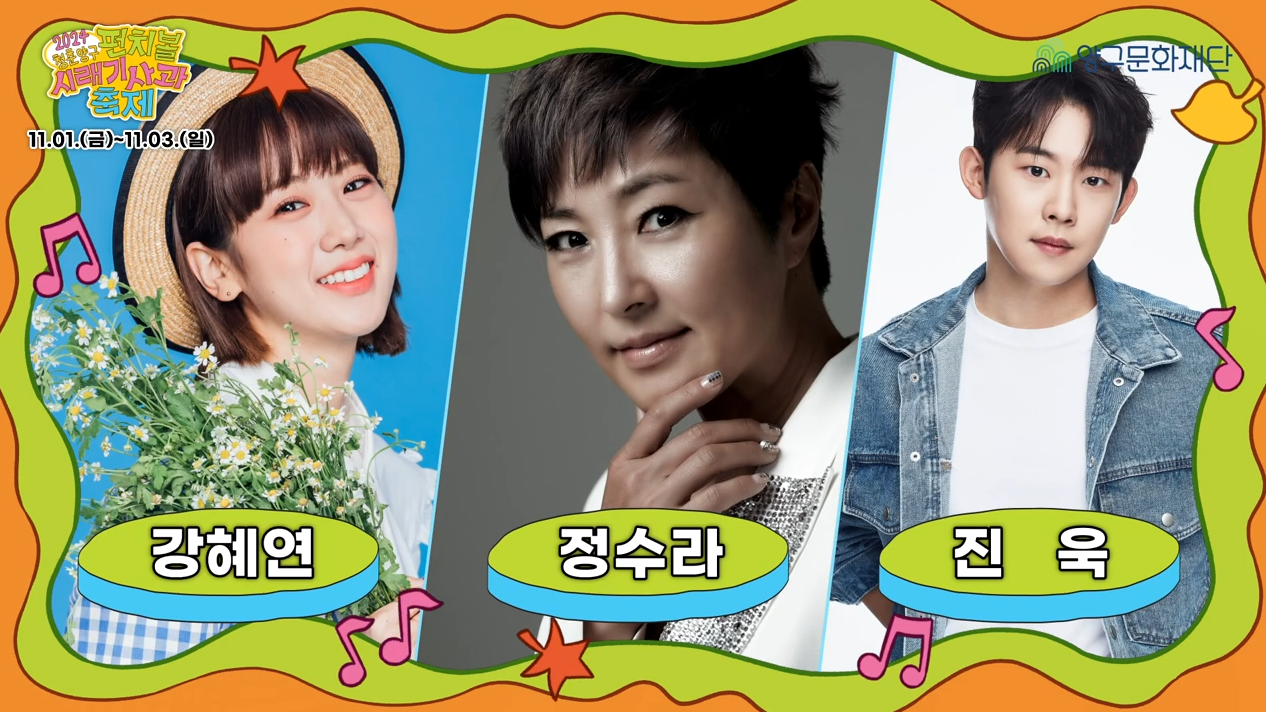 - 공연 일정 2. 11월3일(일) 14:00~15:00 김영만 선생님과 함께 종이접기 / 16:00~17:00 출연진 : 정수라, 짜이