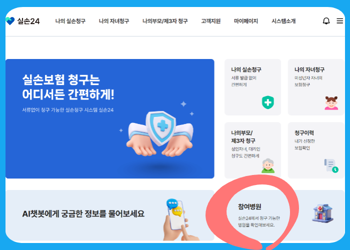 실손24앱 홈페이지 참여병원 청구서류 제출방법 (바로가기 링크)